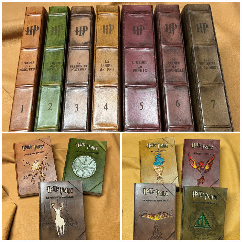 Le Petit Atelier du Cuir a ainsi eu l’occasion notamment de sublimer une collection d’ouvrages “Harry Potter“ en reprenant, par travail de repoussage, le thème de couverture de chaque tome. Cette collection est devenue unique et enchantera des générations.